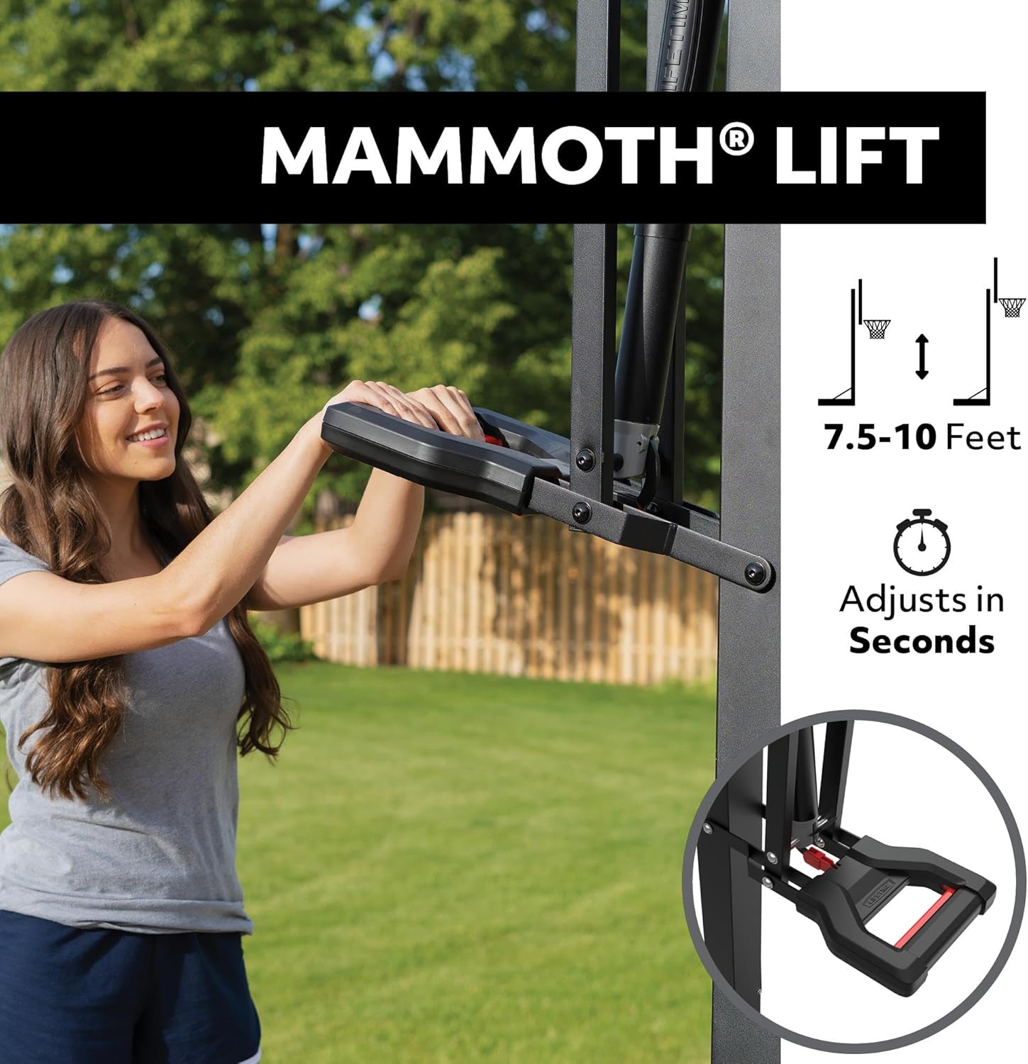 Basketball enthusiasts have a new reason to get excited—the Lifetime Mammoth Lift Basketball System is a complete, exceptional system that balances performance, convenience, and cost to provide you with the best basketball experience. Play like the pros on a heavy-duty tempered glass backboard with a steel frame, which provides great rebound, durability, and playing response. The Slam-It® Ultra rim offers elite performance and houses a low-maintenance all-weather net. Raise or lower the hoop to play your way using the intuitive and accessible Mammoth Lift adjustment mechanism, all with the extreme stability offered by a powder-coated steel pole secured in-ground to a unique, precision-leveled bolt-down anchoring system. Bring everyone together to play at their own level, at home, with the Lifetime Mammoth Lift Basketball System.