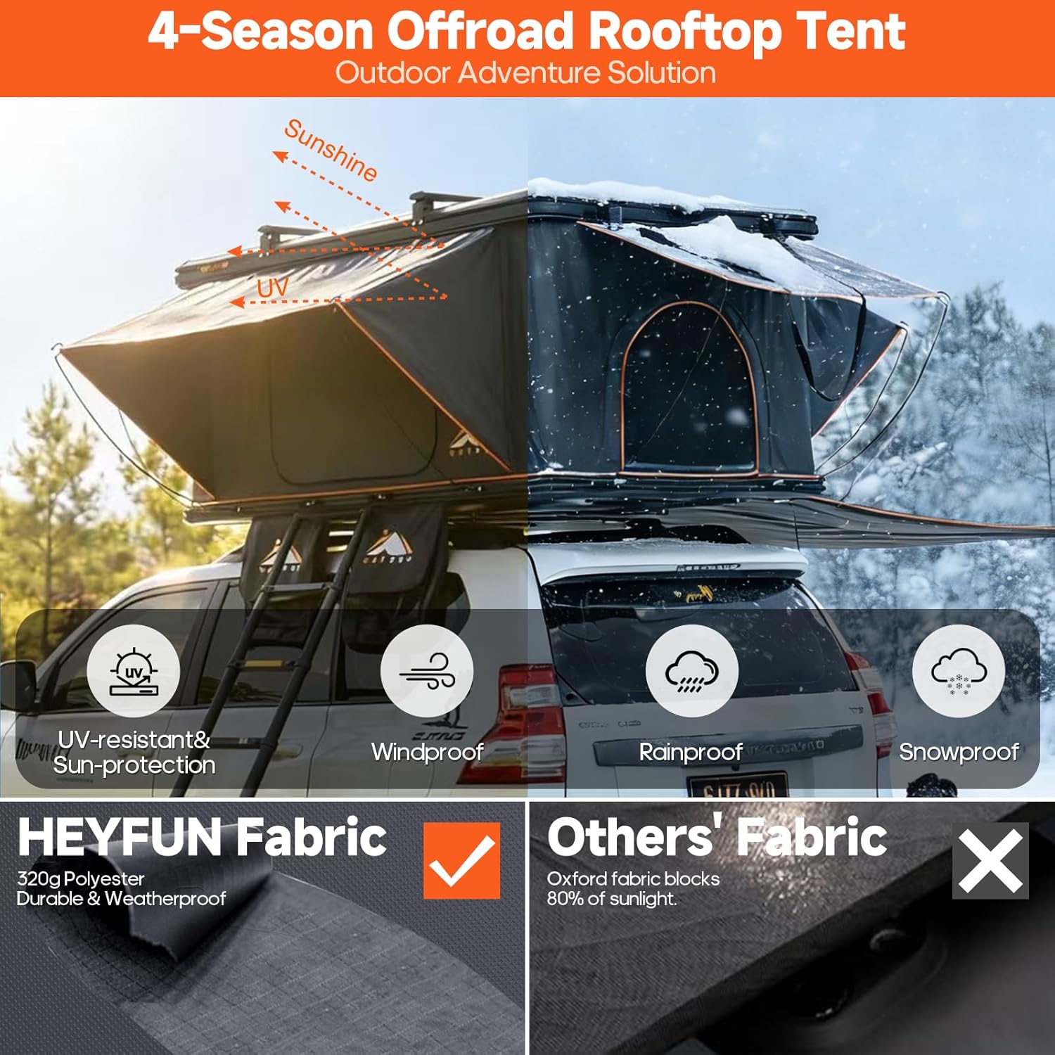 | Included Components | 1*Thermal Liner, 1*Side Awning with Installation Accessories, 2(1 Pair)*Luggage Racks with Installation Accessories, 1*Sleeping Mat, 1*Condensation Mat, 1*Ocean Mat, 1*Aluminum Ladder with Ladder Storage Bag (7.68'), 2*Shoe Storage Bags (20"*20",Waterproof), 8*Support Rods, 1*Universal Mounting Hardware Kit, 1*Built-in USB Outlet, 1*Built-in LED Light Strip, 1*User Manual |