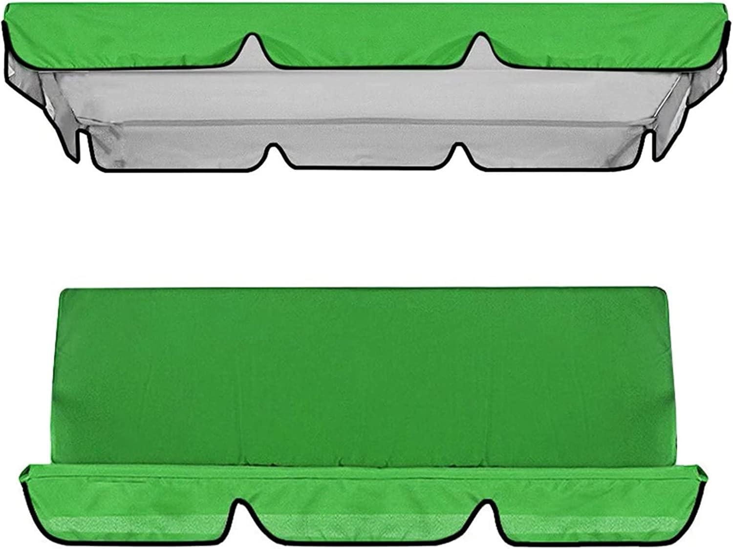 Outdoor Patio Swing Canopy Replacement,Waterproof Patio Chair Top Cover for Swing,2 & 3 Seater Garden Porch Seat Furniture Sun Shade Patio Swing Hammock Top Cover for Patio Garden YardSpecification:- Name:Patio Swing Top Cover- Material:210D silver coated oxford cloth- Color:Red, Gray, Green, Black, Brown, Beige(Optional)- Swing Canopy Size:142×120×18CM/55.9×47.2×7.1inch164×114×15CM/64.5×44.9×5.9inch190×132×15CM/74.8×52×5.9inch249×185×18CM/98×72.8×7.1inch195×125×15CM/76.8×49.2×5.9inchCushion Size:130×140×8CM/51.2×55.1×3.1inch150×150×10CM/59×59×3.9inchFeatures:- Perfect for replacing your old, worn out swing canopy and swing seat cover.- Easily fixed to the swing to avoid being blown away, simple to disassemble to clean with water.- Tough enough to keep rain, hail, snow, dust, leaves and bird droppings away.- Made of top quality 210D silver coated oxford cloth,with waterproof backing,non-fading and tear-resistant.- coverage design avoids the exposure of furniture in the sun makes your Patio Swing Canopy Cover always look like new.Packing List:1 x Replacement Canopy Top Cover1 x Swing Cushion CoverNote:1. Please check the size carefully before you purchase it.2. Please allow 0.5 - 2 cm differences due to manual measurement3. Due to different light and screen display, color may tinily vary from the product