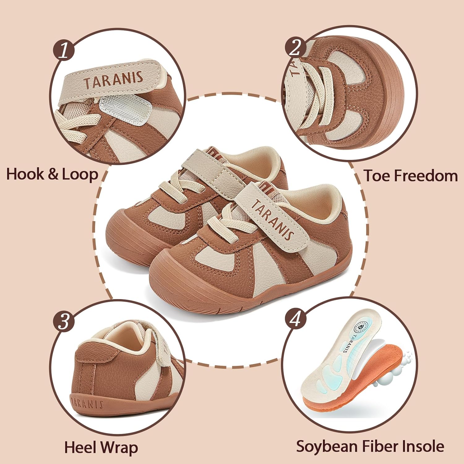 Tiny explorers deserve big adventures! As your baby crawls, pulls up, and takes those first wobbly steps, their shoes should keep up – silently. Since little ones can't tell us if their feet feel squished, we choose wisely: roomy toe boxes for wiggle freedom, breathable fabrics against sweaty soles, cloud-like comfort for tender skin, and bump-proof toes for rug burns and stubbed toes. Because happy feet make fearless explorers.